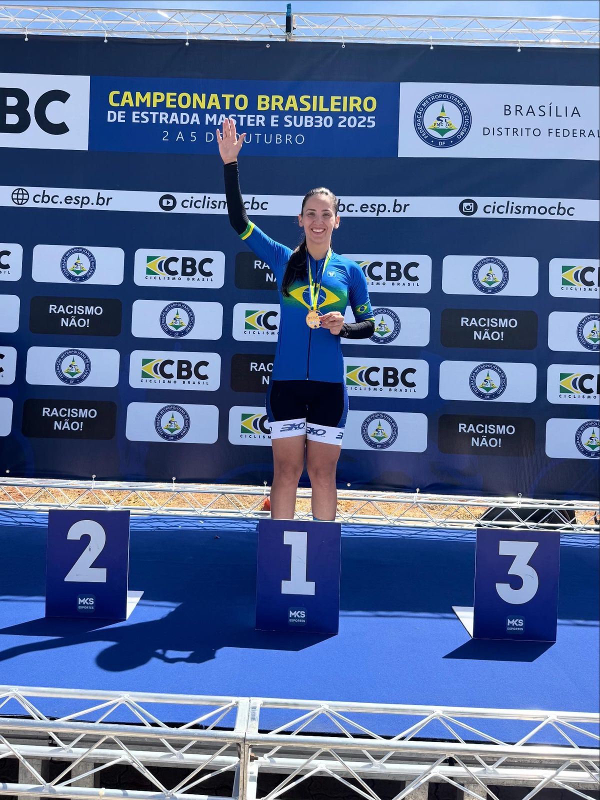 Competindo na categoria Master Feminino A1 (30 a 35 anos), Danieli Labegallini garantiu o primeiro lugar na prova de Contra-Relógio Individual (CRI), percorrendo o trajeto de 8,80 km e conquistando a tão sonhada medalha de ouro e o reconhecimento nacional.