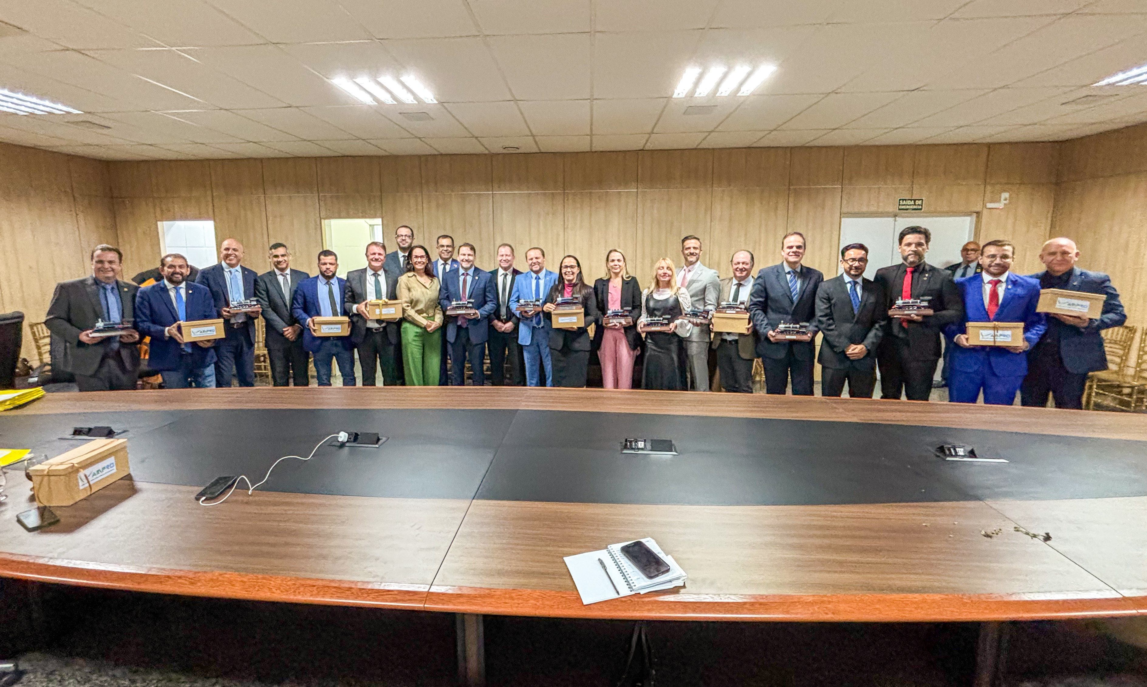 Durante o encontro, os representantes do Ministério Público entregaram lembranças simbólicas aos deputados estaduais — uma minilocomotiva para cada parlamentar — como forma de reconhecimento da Ampro pela parceria e pela relação de respeito e cooperação entre as duas instituições.