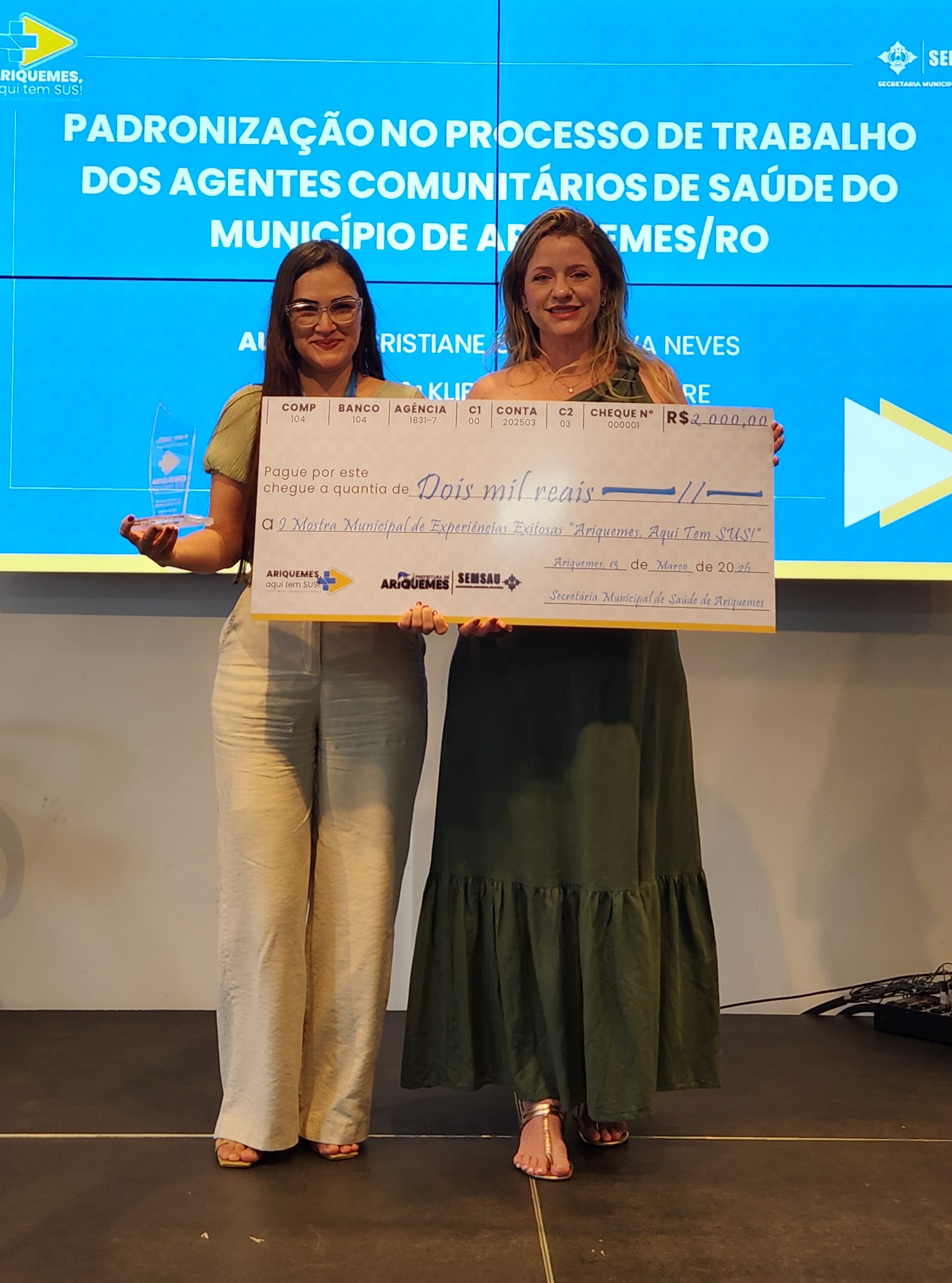 O projeto que obteve a maior pontuação foi o da enfermeira Cristiane Suelen Silva Neves, focado na padronização do processo de trabalho dos Agentes Comunitários de Saúde (ACS’s) do município de Ariquemes. A iniciativa visa uma série de melhorias cruciais para o sistema de saúde local: