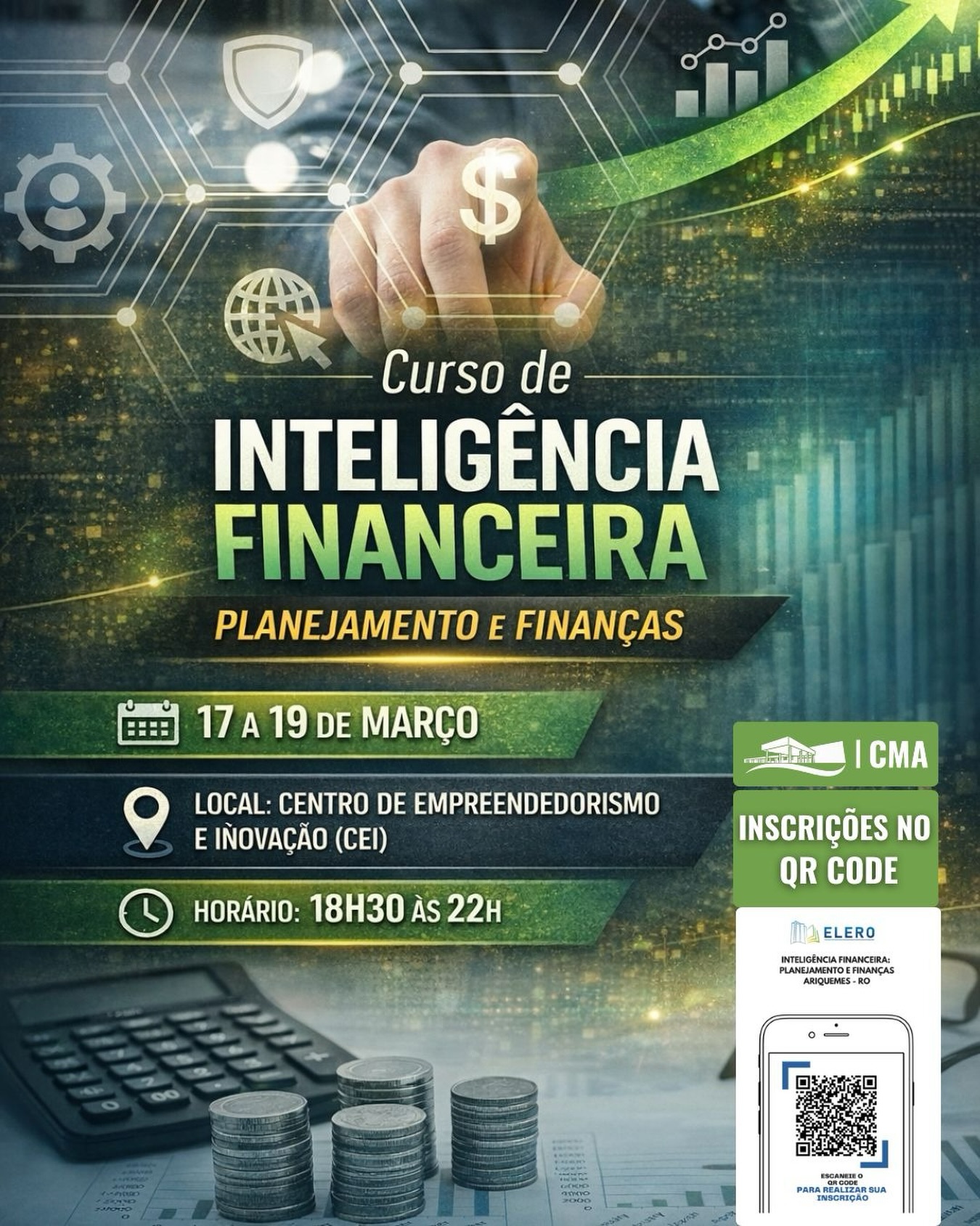 Ariquemes receberá, nesta semana, o Curso de Inteligência Financeira: Planejamento e Finanças, uma oportunidade imperdível para você dominar a arte de gerenciar seu dinheiro e alcançar a tão sonhada estabilidade.